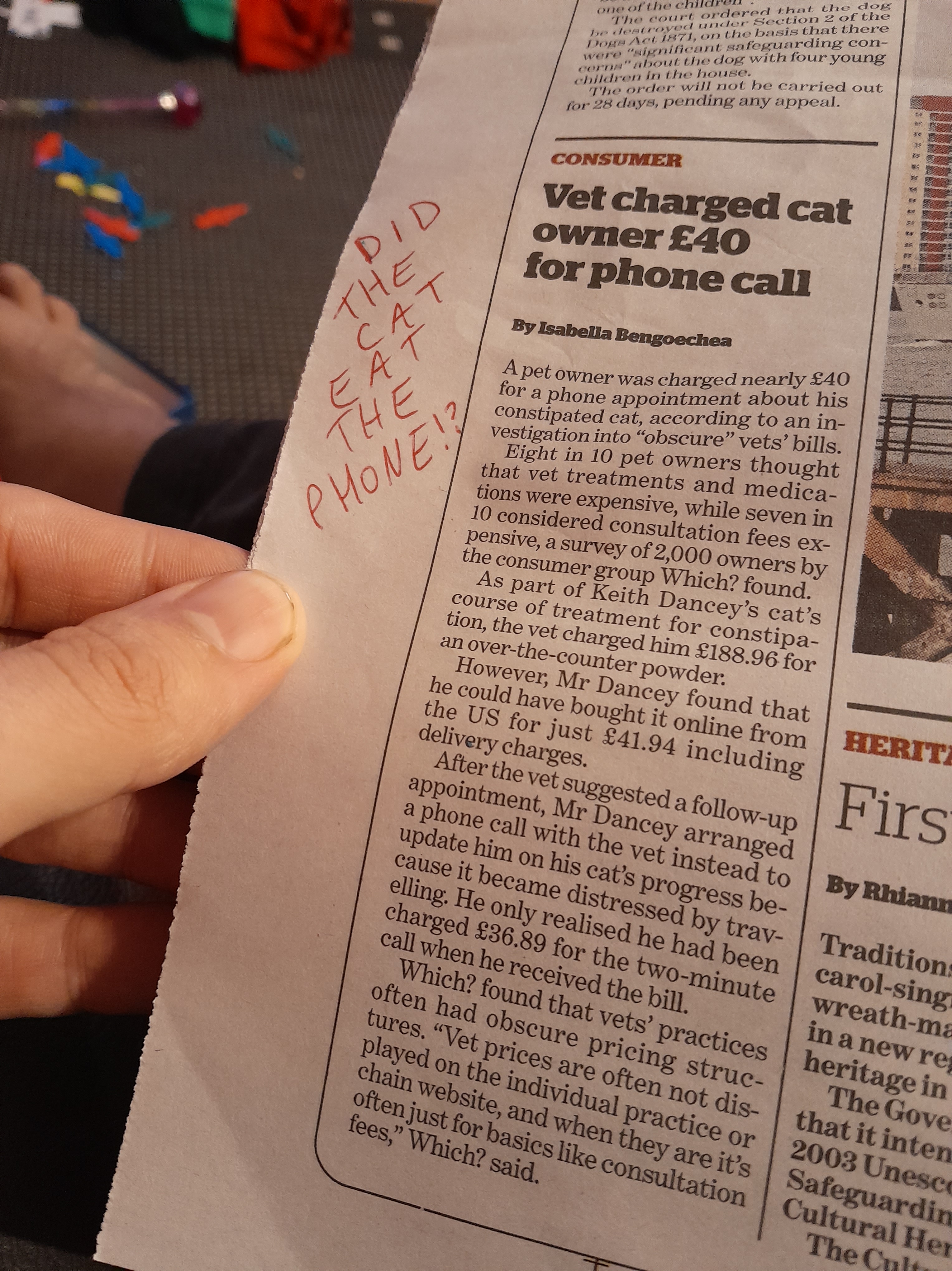 Such as the pet owner who was charged £40 for a phone call to discuss his cat’s constipation.