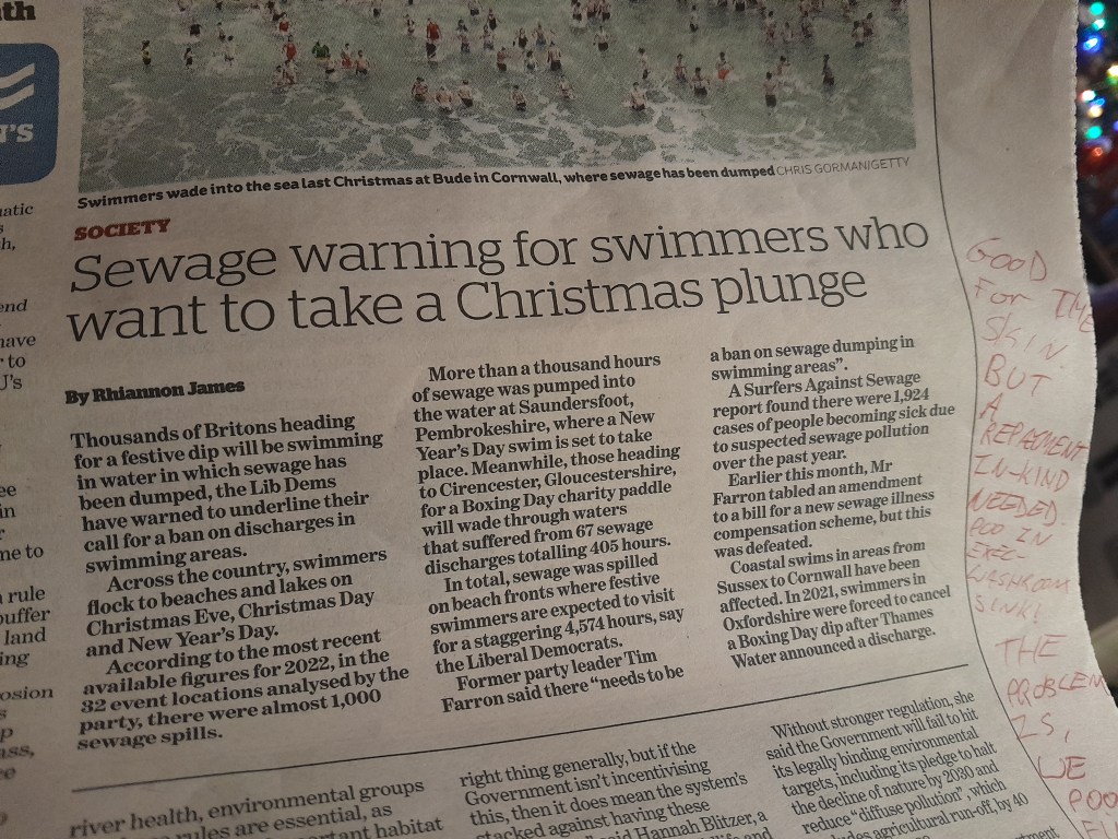 Then there was the annual Christmas Day plunge into sewage on the nation’s coastal swimming spots.