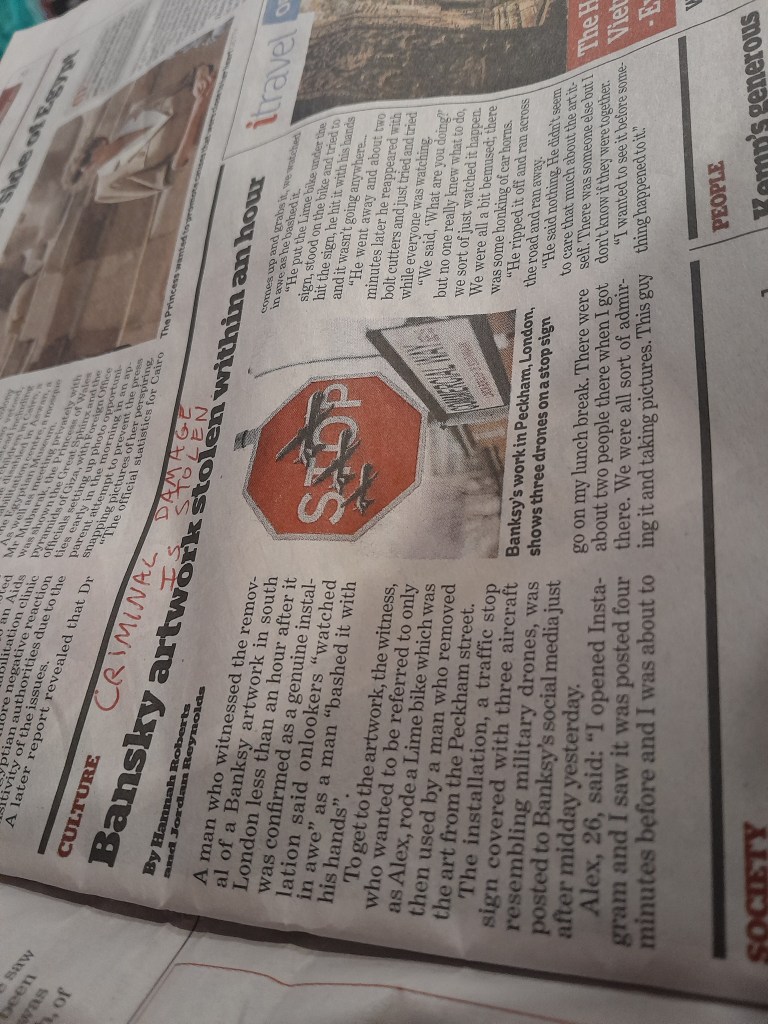 And lastly, someone was arrested for stealing some valuable criminal damage.