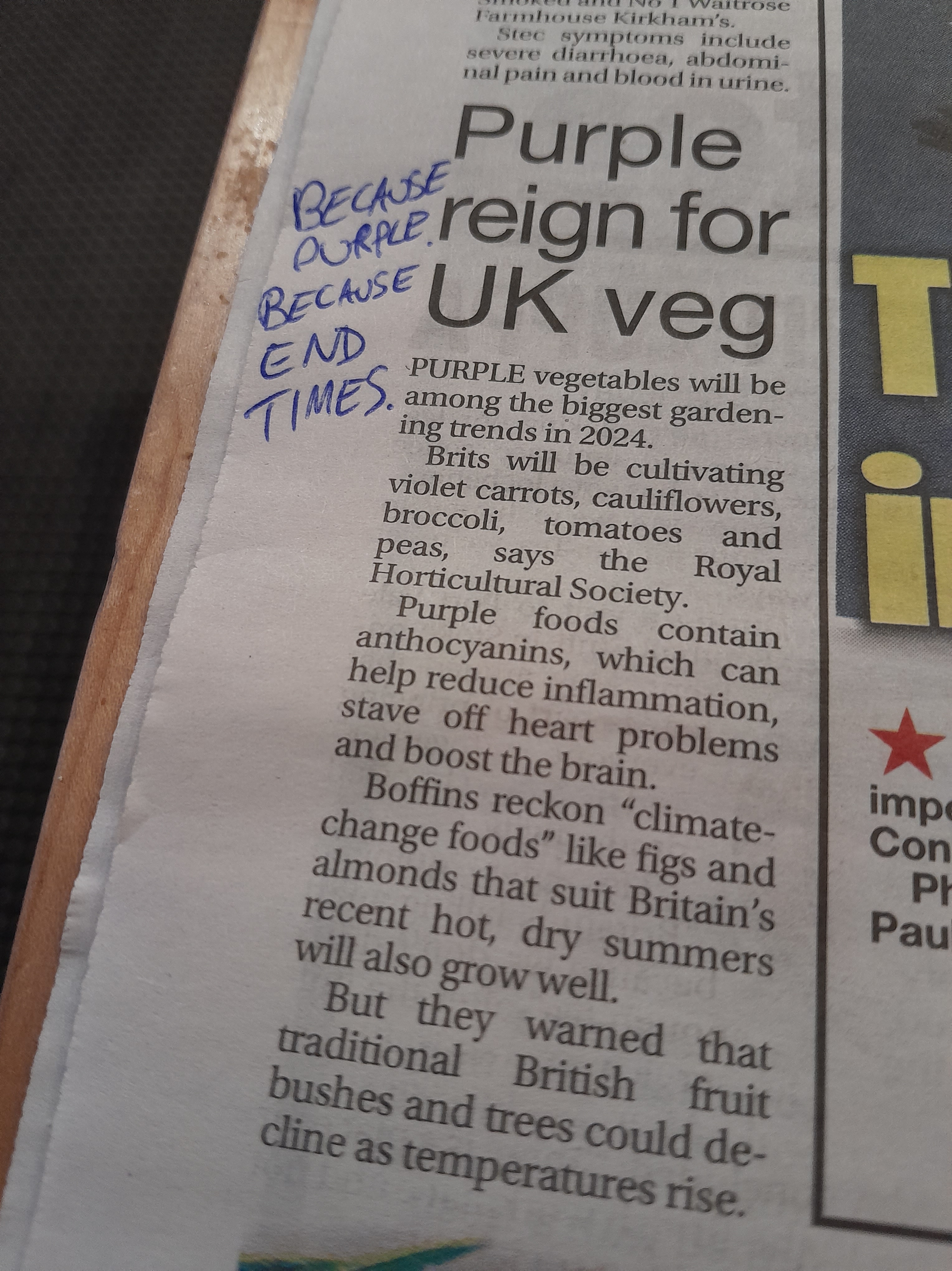 And, purple vegetables. Very ‘in-vogue’. Very ‘end-times’.