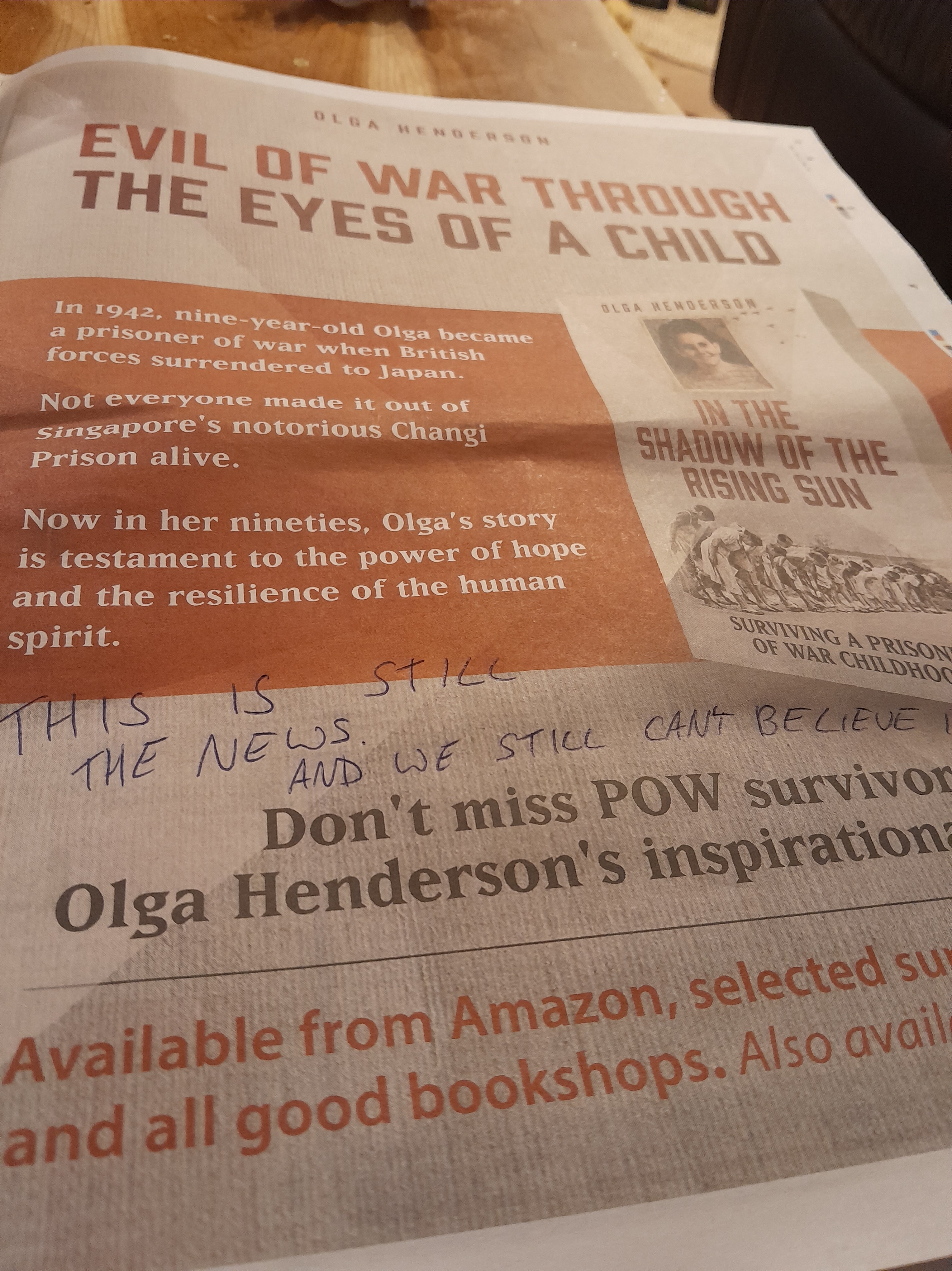The last thing I noted in this paper was an advert. For a book of a tale from a witness to warcrimes they endured as a child in WW2.